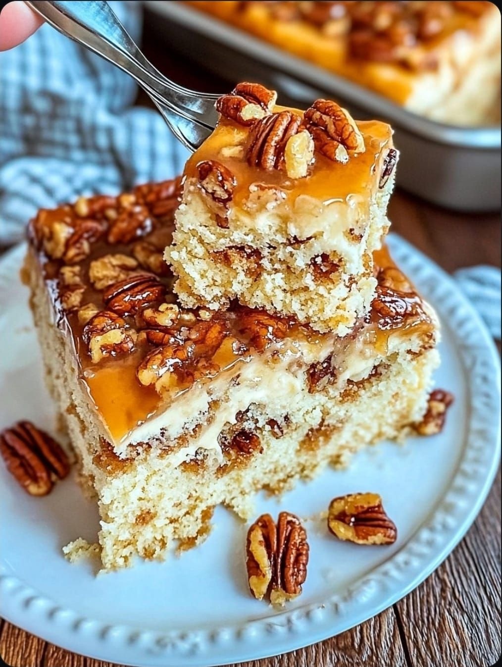 his Butter Pecan Praline Poke Cake is an indulgent, buttery dessert that combines the flavors of butter pecan cake with a sweet praline sauce that soaks into the cake, making every bite moist and rich. Topped with whipped cream and crunchy pecans, this cake is perfect for special occasions or whenever you want a delicious, comforting treat.