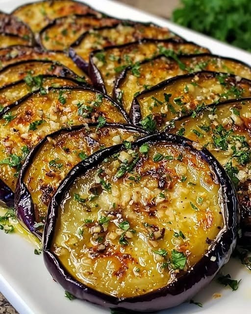 This dish features melt-in-your-mouth roasted eggplant slices, marinated in a zesty lemon-garlic-olive oil blend, and topped with fresh herbs. It’s an easy, flavorful side that pairs beautifully with grilled meats, grains, or legumes, and can even be served as part of a mezze platter.