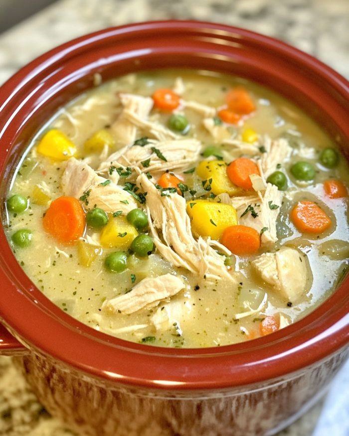 Picture this: It’s a chilly Midwest evening, you’ve just walked through the door after a long day, and the only thing that sounds better than a fuzzy blanket is a warm, hearty bowl of chicken pot pie soup. This isn’t just any soup; it’s a comforting blend of tender chicken and vegetables, slow-cooked to perfection. Ideal for those busy days, this recipe transforms the classic flavors of a pot pie into a spoonable delight. Plus, it’s incredibly simple to throw together in the morning, so you come home to a ready-to-eat meal.