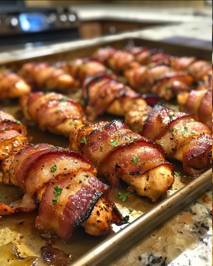 This recipe offers a delicious and low-carb twist on classic chicken tenders. The bacon adds a smoky, crispy exterior, while the tender chicken is seasoned to perfection.